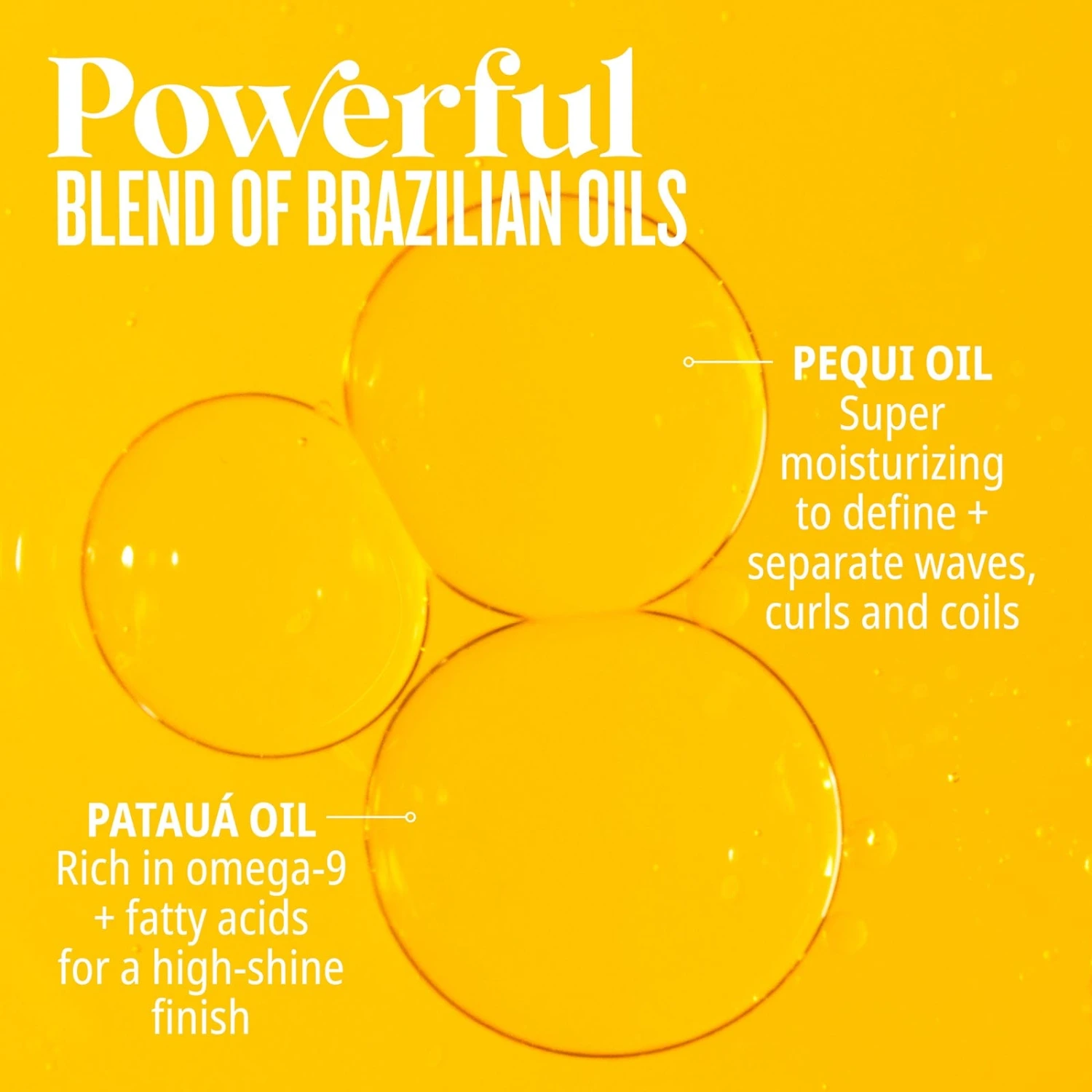 Infused with a powerful blend of Brazilian oils. This nourishing hair oil fights frizz for up to 72 hours, adds mirror-like shine, repairs damage, and deeply moisturizes thirsty strands.