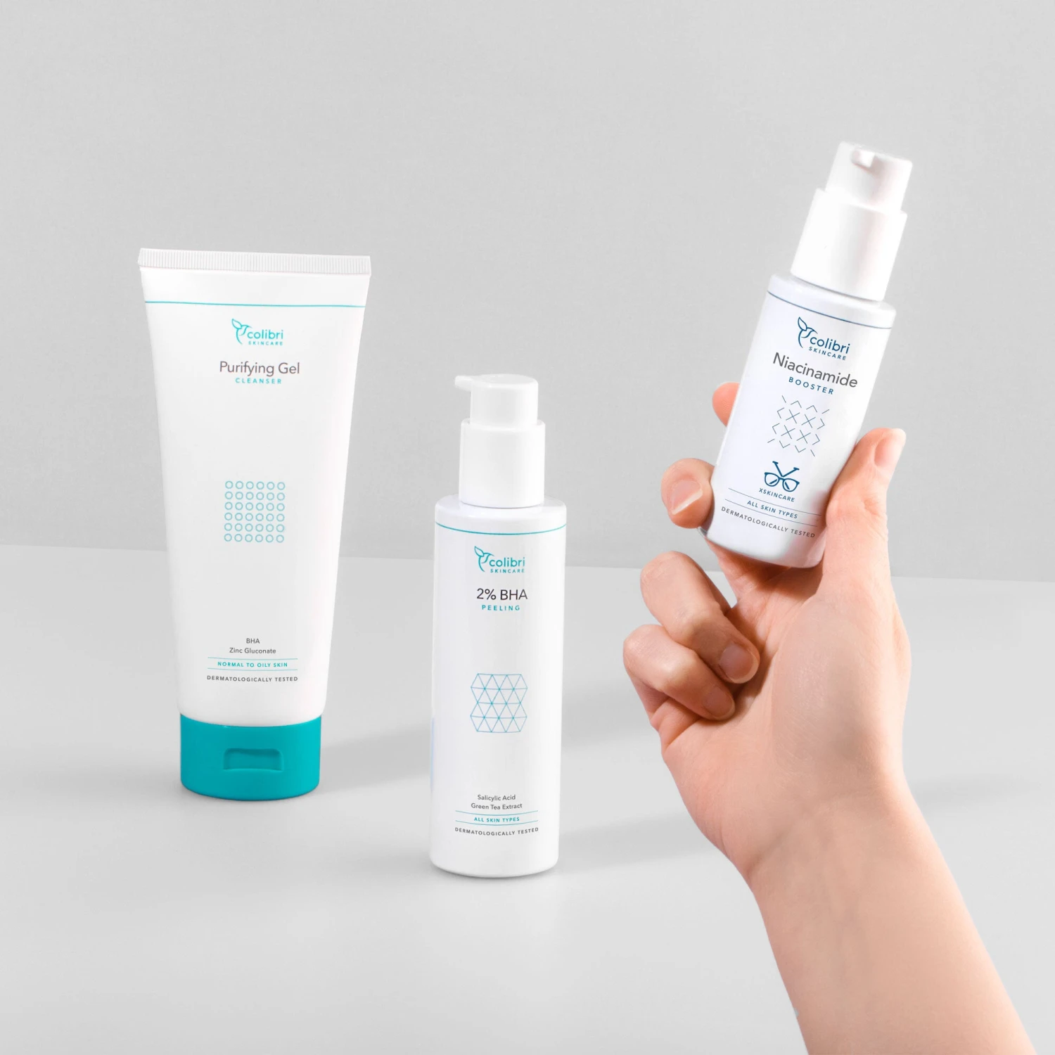 Mit diesem Set können verstopfte und vergrößerte Poren sichtbar reduziert und effektiv vorgebeugt werden. Es besteht aus dem Purifying Gel Cleanser, dem 2% BHA Peeling und dem Niacinamide Booster. Enthaltene Wirkstoffe wie Salicylsäure und Niacinamide führen dazu, dass die Poren sichtbar verkleinert werden. Abgestorbene Hautzellen werden schonend entfernt und die Talgproduktion langfristig reguliert.