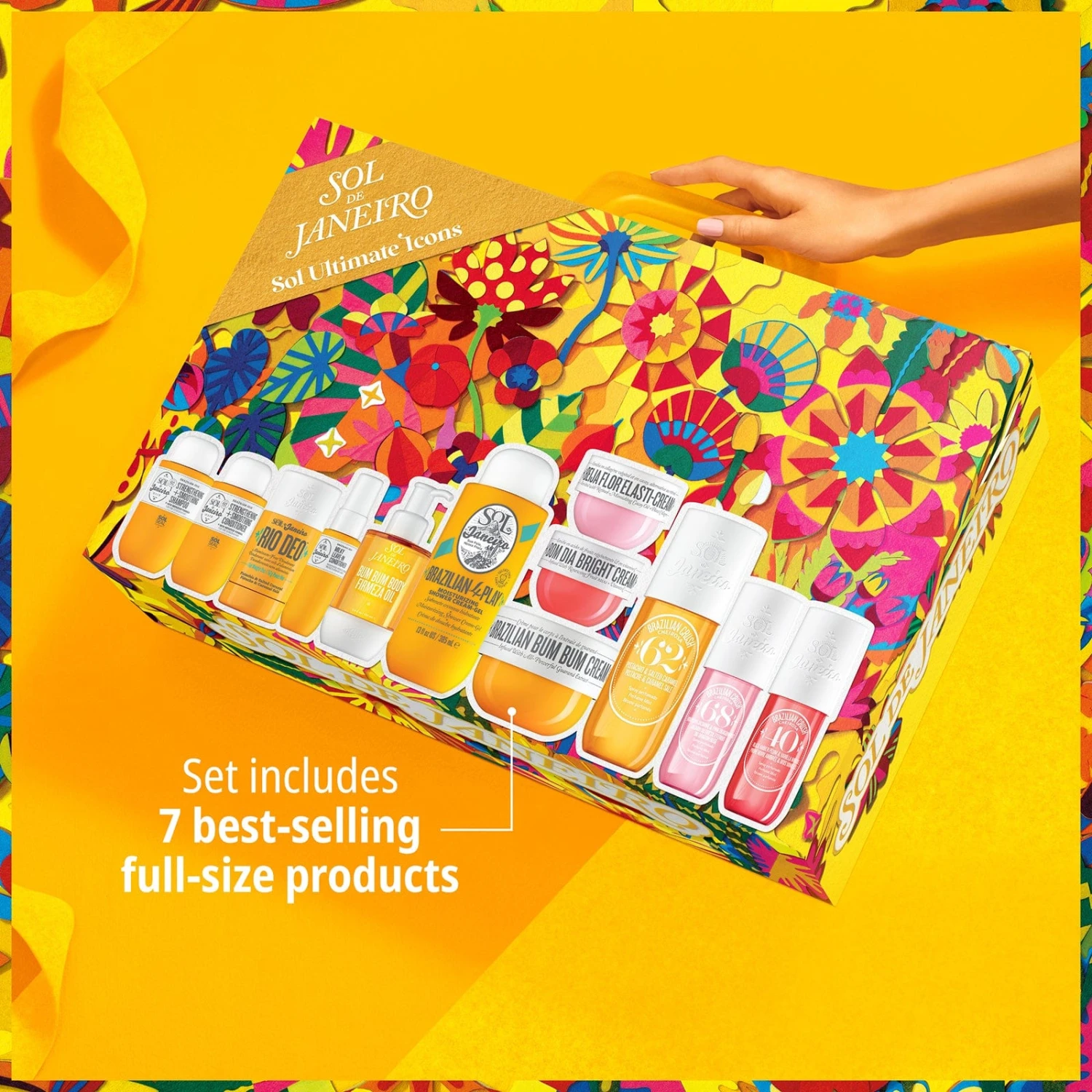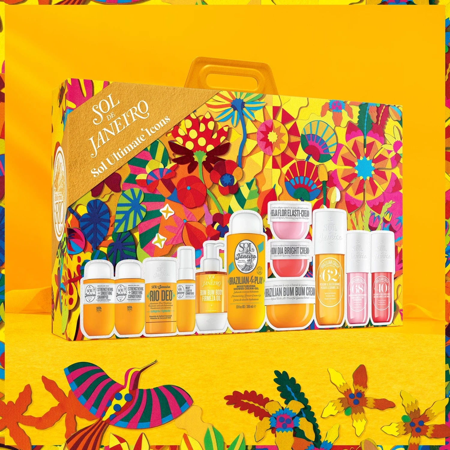 This twelve-piece set includes everything you need for a full Sol de Janeiro experience: three benefit-packed body creams, three best-selling perfume mists, a hair care trio, refillable deodorant, hydrating shower gel-cream, and body oil. $302 value.