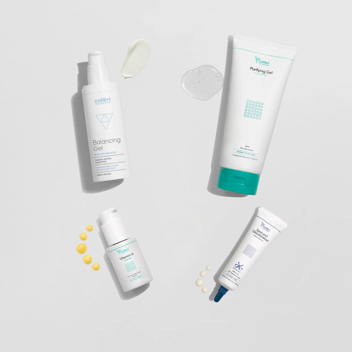 Dieses Set bietet bei zu Unreinheiten neigender Haut die optimale Basispflege für eine reine Haut mit weniger Unreinheiten. Es besteht aus dem Purifying Gel Cleanser, dem Vitamin A Serum, dem Spot and Discoloration Treatment und dem Balancing Gel Moisturizer. Enthaltene Wirkstoffe wie Retinal, Salicylsäure und Sulfur verringern Hautunreinheiten effektiv und sichtbar. Entzündungen können beruhigt und gemindert werden, während das Hautbild verfeinert und langanhaltend verbessert wird.